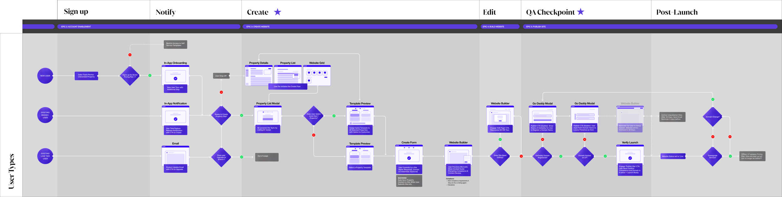 Create a UI that enables customers to easily create and launch property websites in our platform.
